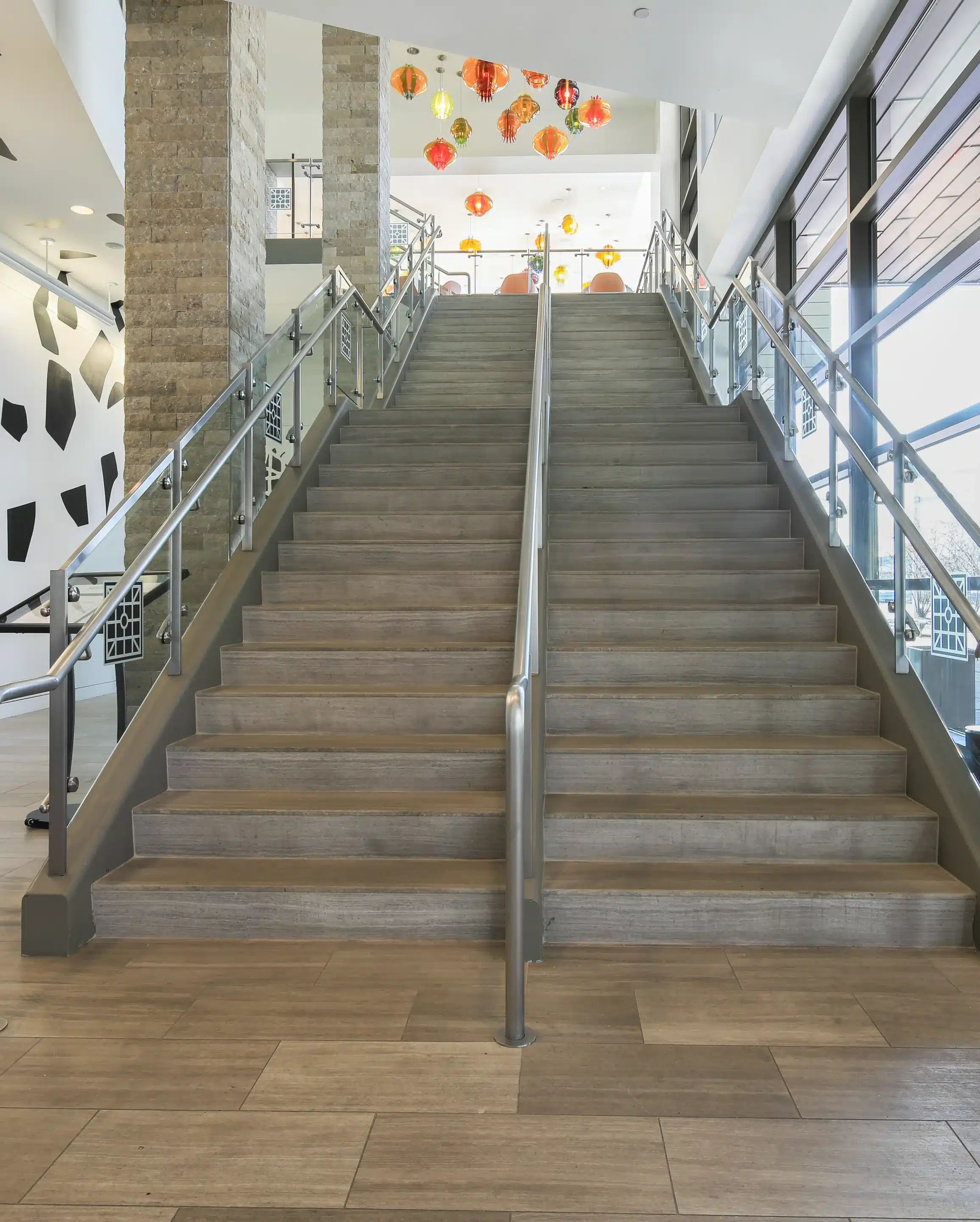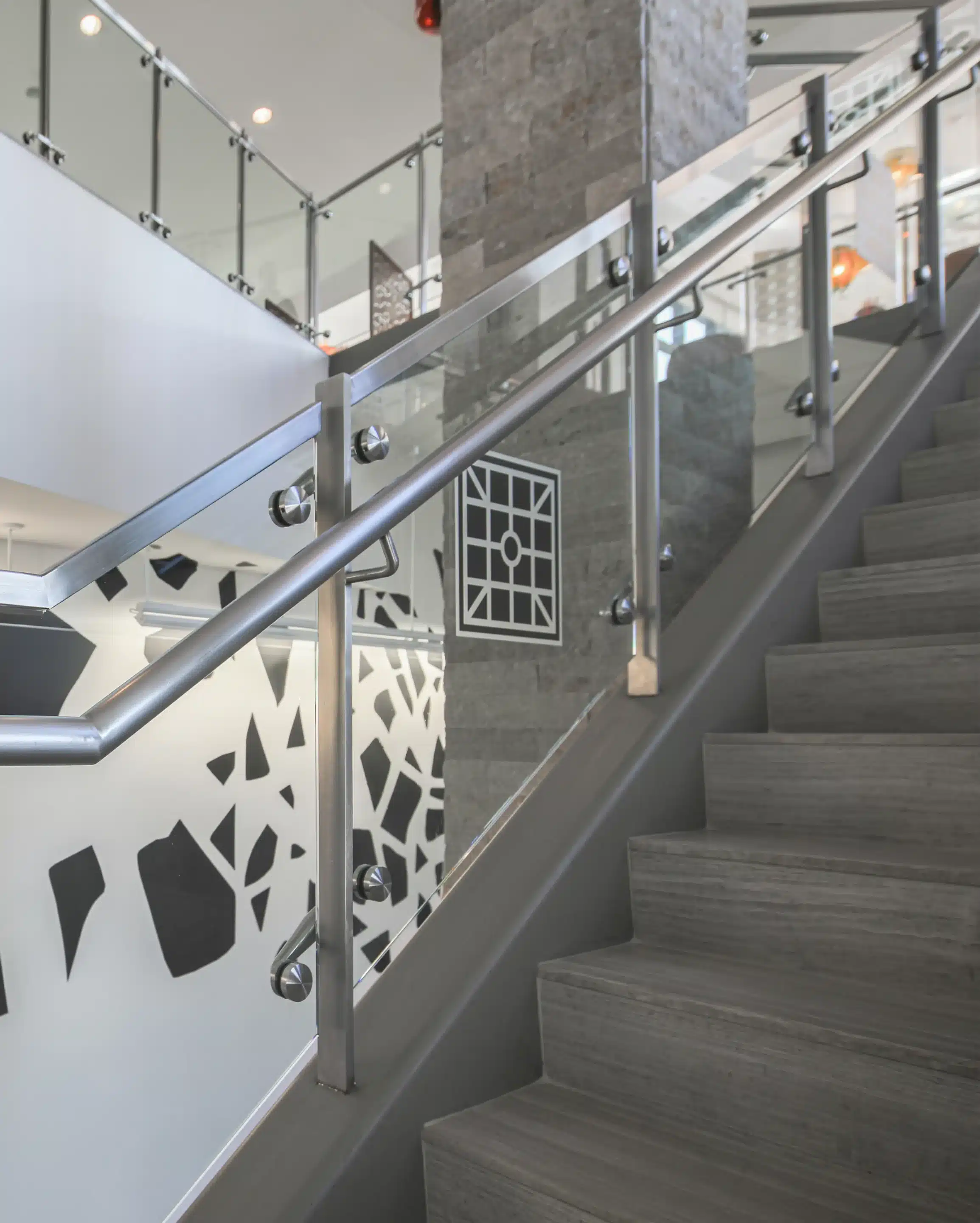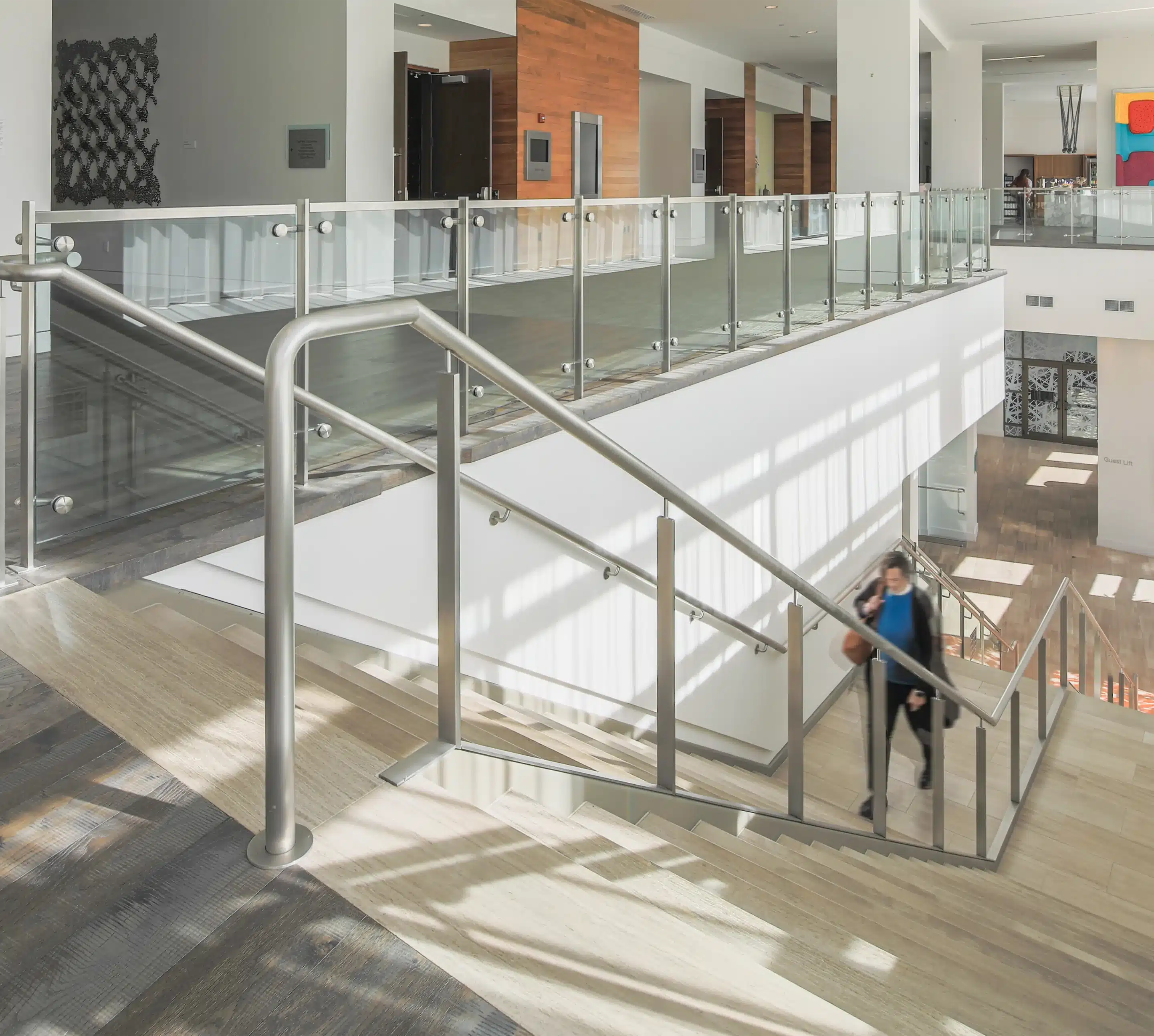 Design Highlights: The glass railing installation provides clean uninterrupted views of the museum exhibits while still providing safe access through the entire museum.